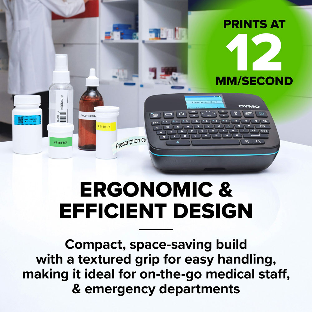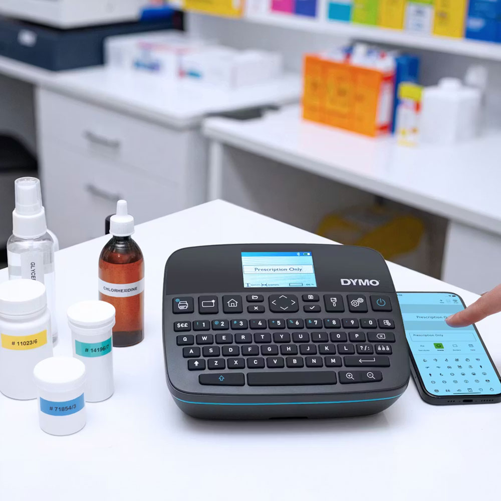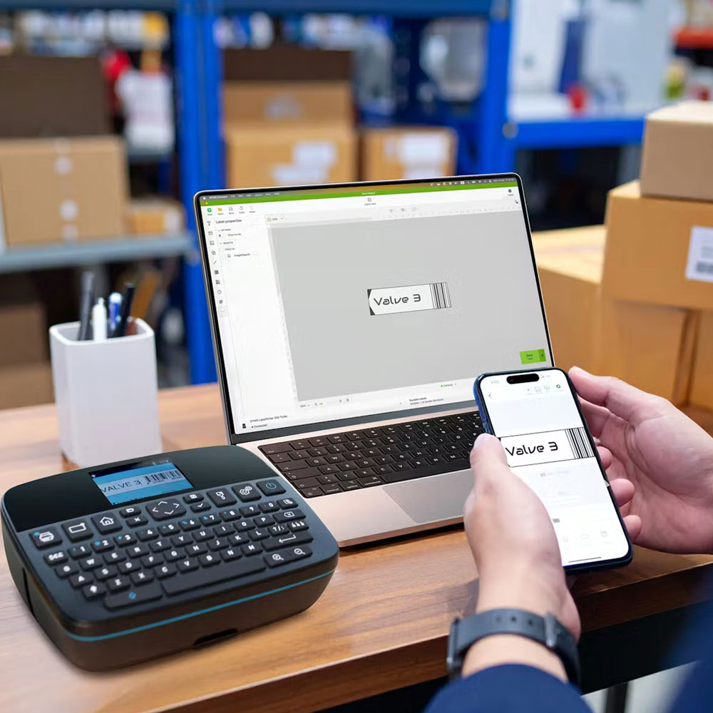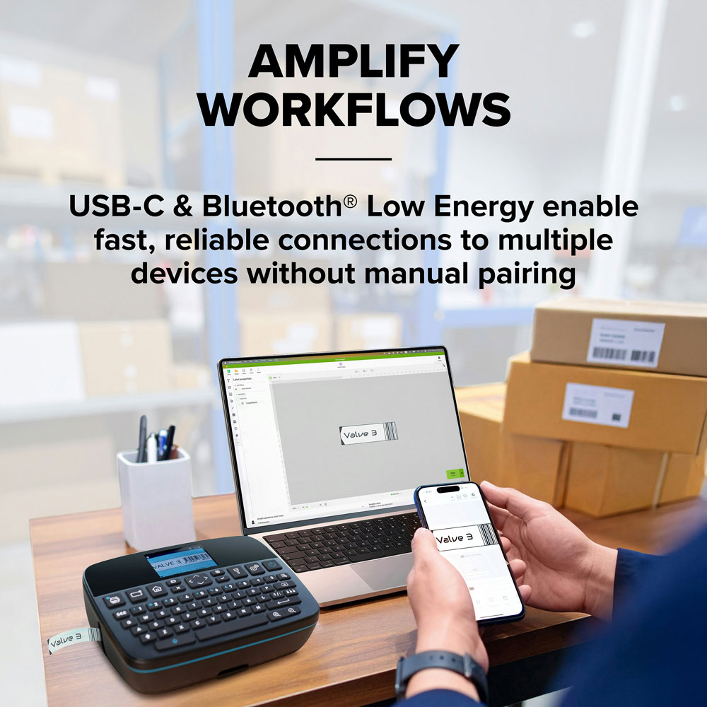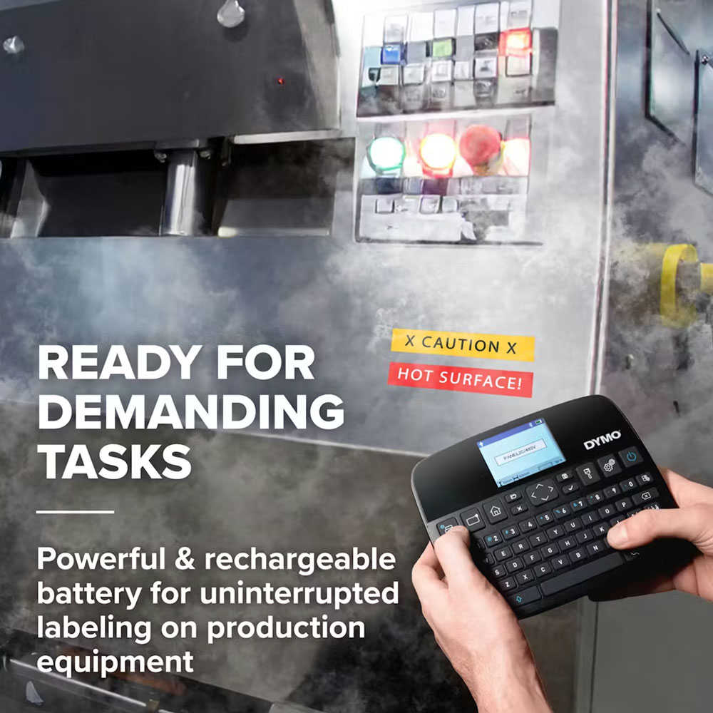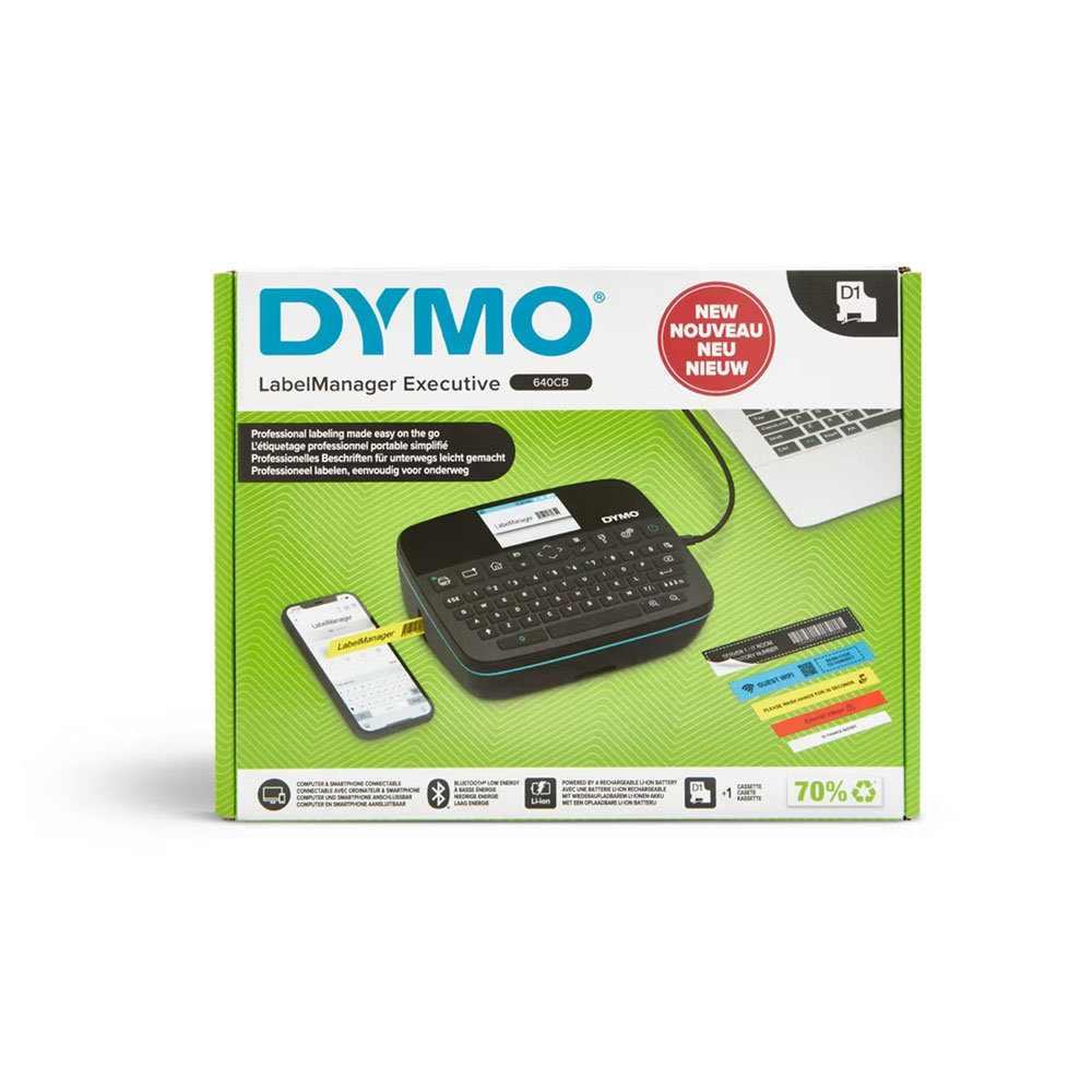 LabelManager Executive 640 CB QWY Klavye, 1/4" ila 1" arasında değişen genişliklerde, çeşitli renk ve yüzey seçeneklerine sahip hem D1 Standart hem de Dayanıklı bant seçeneklerini destekler. Hareket halindeyken etiketlemenin rahatlığını yaşayın. Mobil profesyoneller için tasarlanan şarj edilebilir lityum iyon pili ve kompakt tasarımı, nerede olursanız olun etiket oluşturmayı sağlar. Eşsiz okunabilirlik için yüksek çözünürlüklü ekranı ve gelişmiş erişilebilirlik için sezgisel ve net menü navigasyonu ile LabelManager Executive 640 CB, etiket oluşturma ve özelleştirme için yeni bir standart belirliyor. Ek olarak, kullanıcı dostu arayüzü ve Bluetooth® Düşük Enerji teknolojisi ve USB-C gibi çift bağlantı seçenekleri, DYMO®'nun mobil ve masaüstü yazılım uygulamaları aracılığıyla neredeyse sınırsız* kişiselleştirilmiş etiket kaydetmenize olanak tanıyarak, akıcı bir iş akışı sağlar. İster ofisinizde düzenleme yapın ister sahada çalışın, etiketleme görevlerinde size benzersiz bir verimlilik ve hassasiyet sağlar.